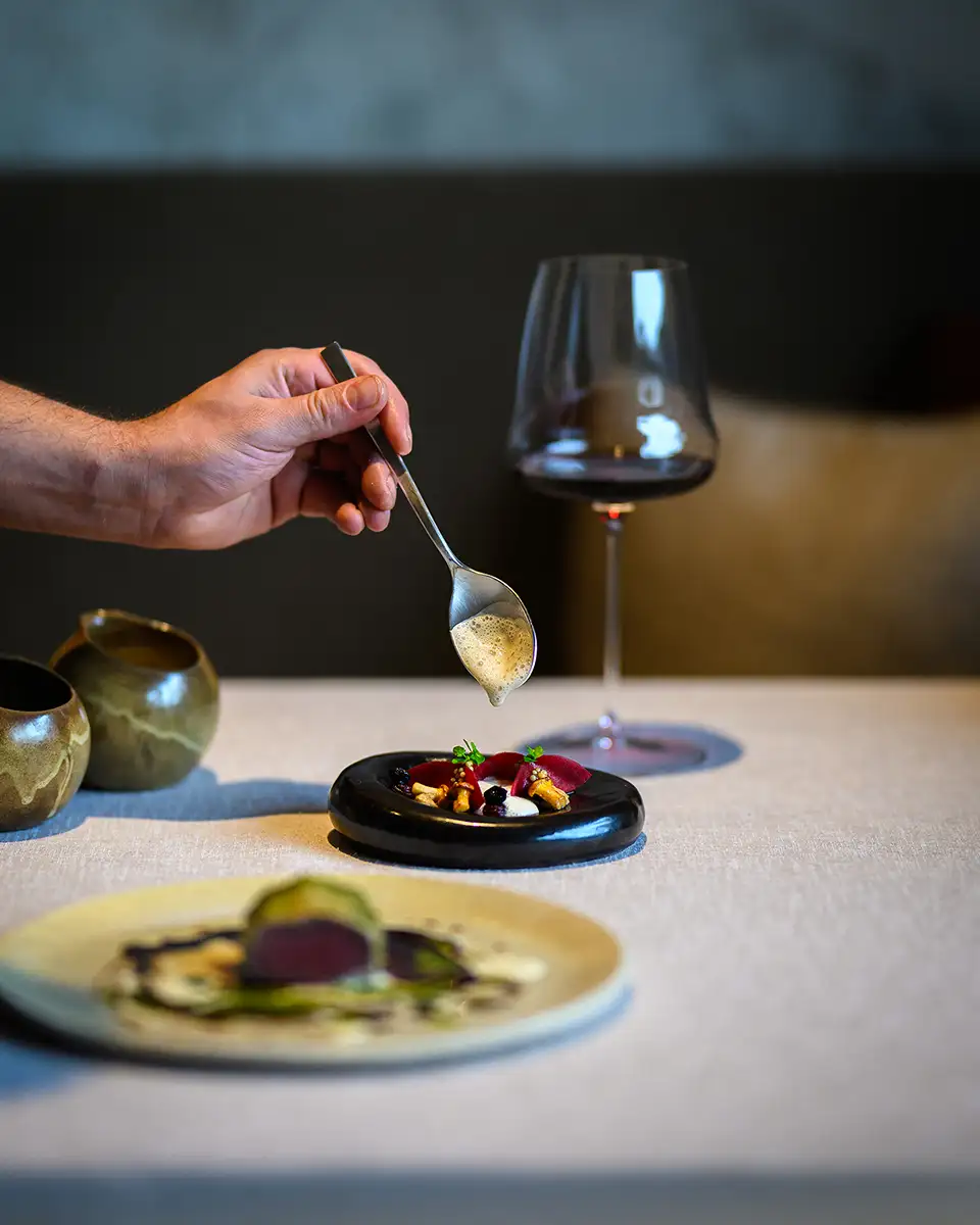 Or perhaps that’s where it all begins: ‘Every new dish starts with a creative spark inspired by flavour’ says Phillip Schnabel, who previously shaped the culinary direction at ESSENCE in Munich before joining Aurea as well as being awarded a Top 50 Chef by Schlemmer Atlas.. ‘From there, the dish is constructed top-down – guided entirely by taste, right through to the final bite.’
