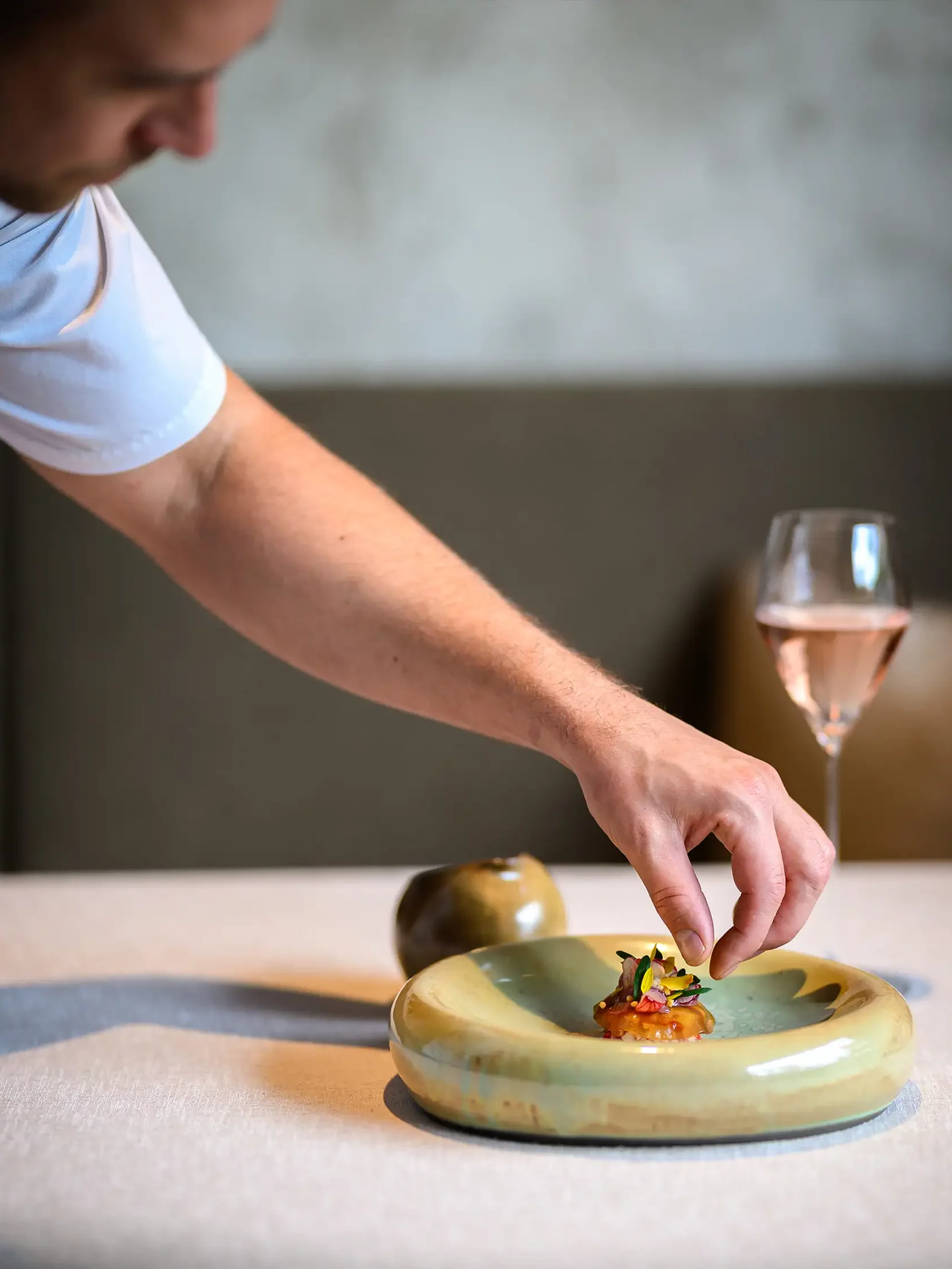 ‘Cuisinez-vous français ? Do you cook French?’ It’s a question Phillip Schnabel has been asked countless times – unsurprisingly, given his foundation in the classical French culinary tradition. The influence is unmistakable in his dishes: a depth of aroma and structure that is, in his words, ‘complex, but never contrived’. His passion for creating original dishes was sparked under the mentorship of Christian Lohse.